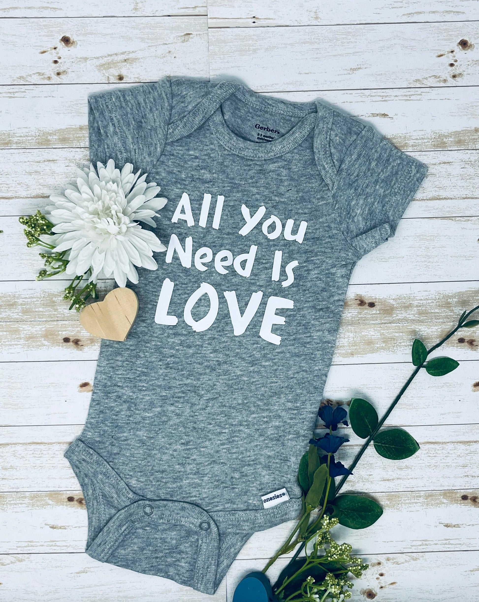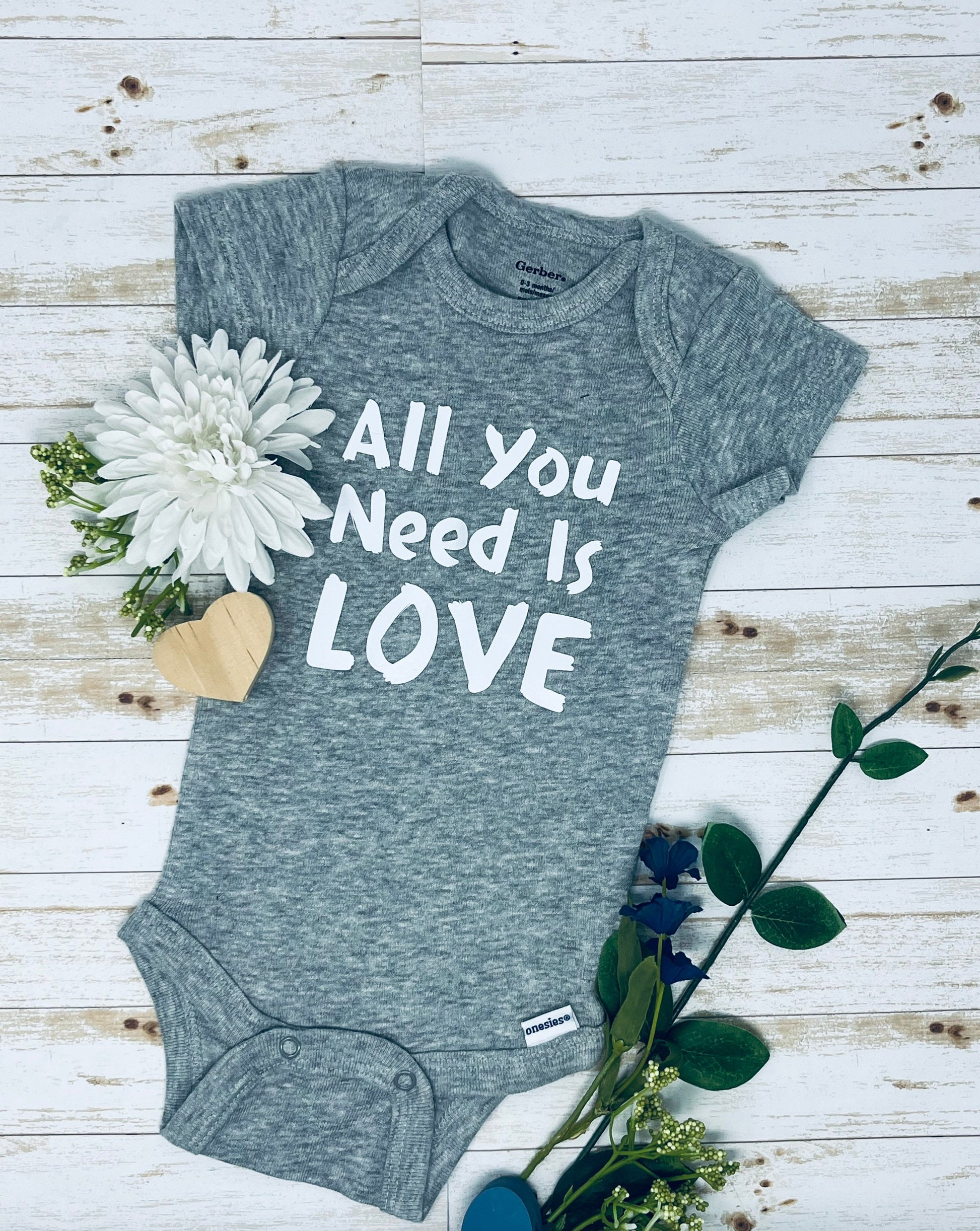 Love is all you need and we have plenty of it for this cute baby onesie.