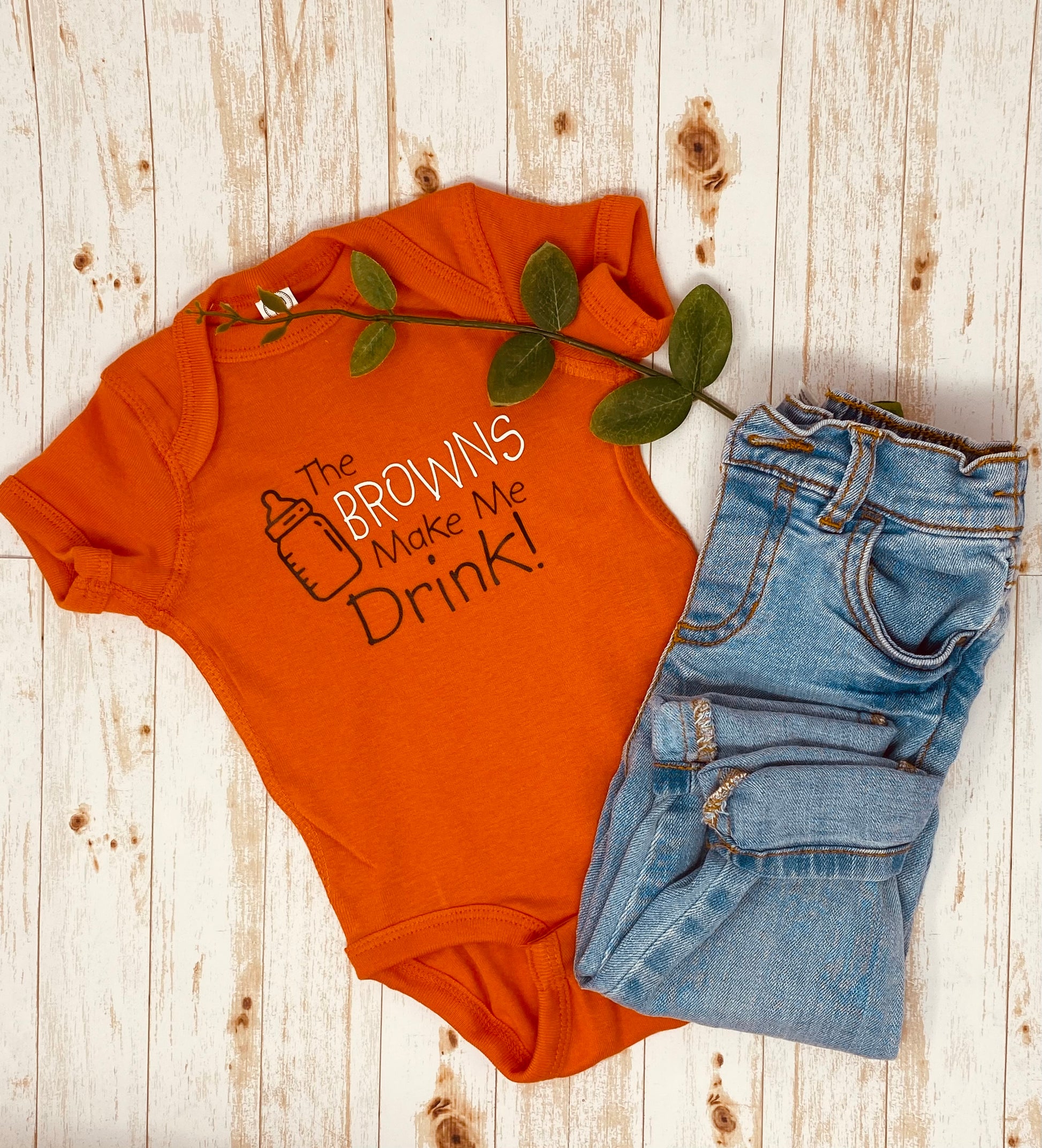 Bottles Up! Your baby will be the life of the party in this cute Cleveland Browns themed onesie- go brownies!
